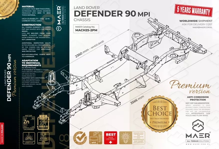 LAND ROVER DEFENDER 90 MPI (VM) GALVANISED CHASSIS - PREMIUM VERSION