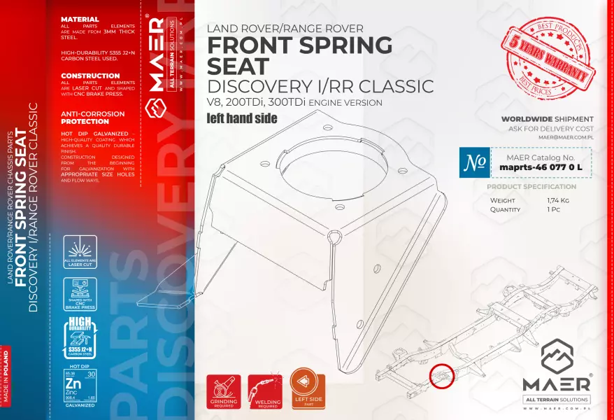LAND ROVER DISCOVERY II/RANGE ROVER CLASSIC V8, 200TDi, 300TDi GALVANISED FRONT SPRING SEAT left