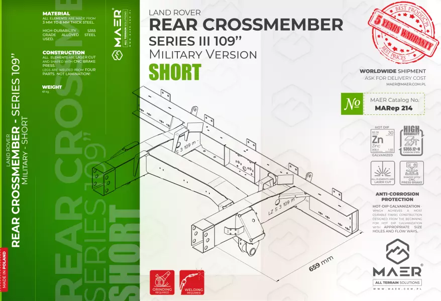 REAR CROSSMEMBER SUITABLE FOR LAND ROVER SERIES III 109" MILITARY VERSION