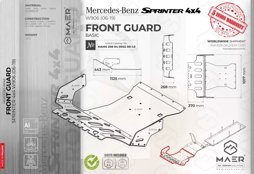 upper main part and side wings - 6 mm-thick aluminum